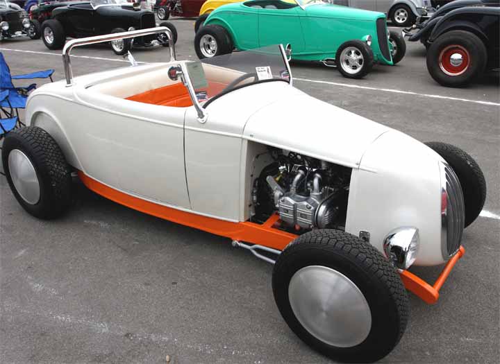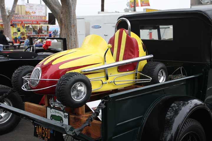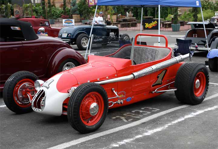 | Look closely: what looks like a deuce roadster with a track nose is powered by a Honda 1000 engine and scaled accordingly. I'd guess it about 60% scale. |