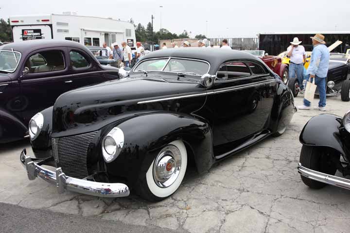Part of the parking lot show: a chopped, sectioned 39 Merc that started life as a four door sedan and now has a metal removeable roof.